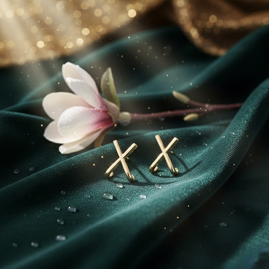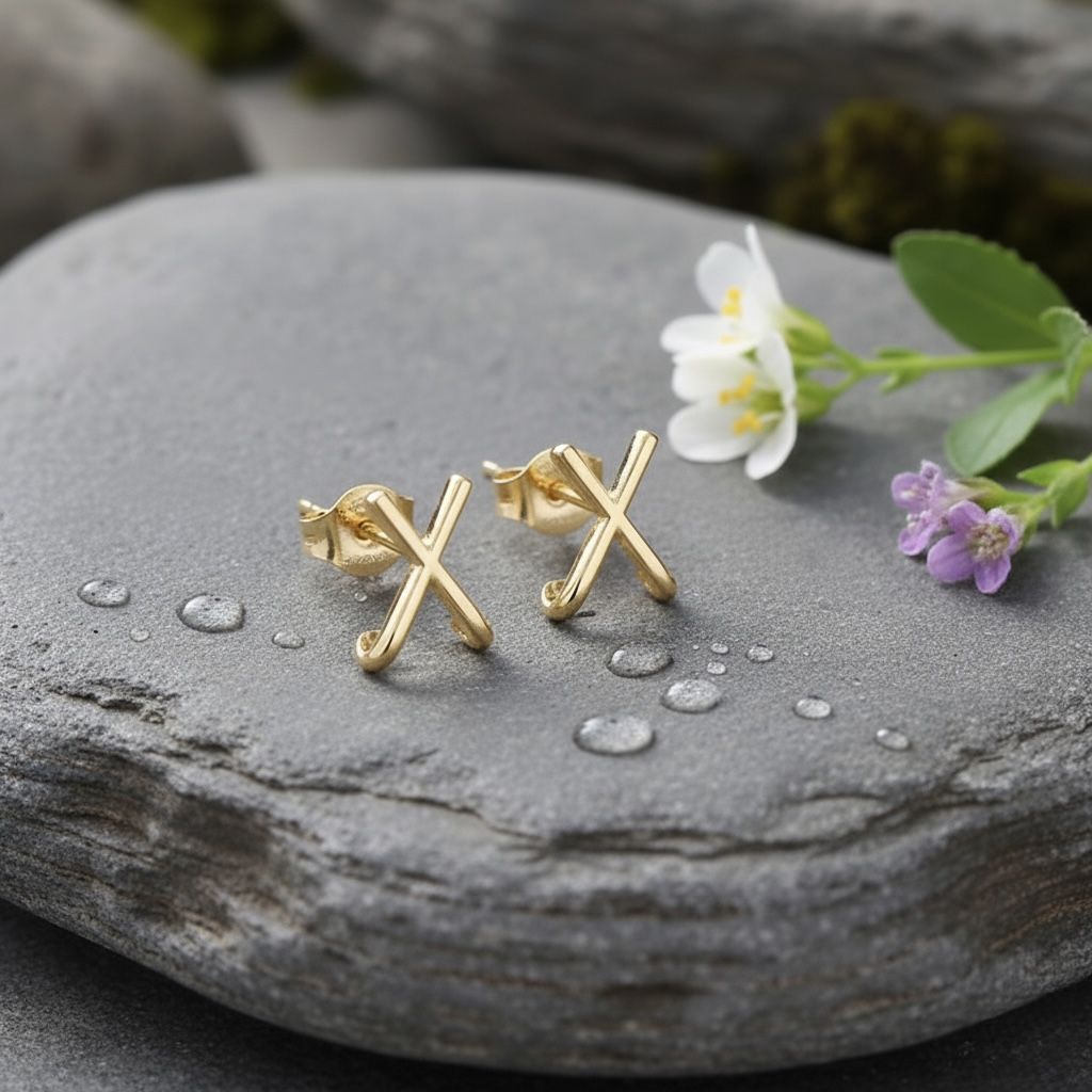 Style Tip: These versatile studs pair perfectly with structured, clean-line clothing—think a black turtleneck, a sharp blazer, or tailored denim. Wear them alone for a sleek statement, or stack them with a simple gold cuff for an edgy, modern ear stack.
