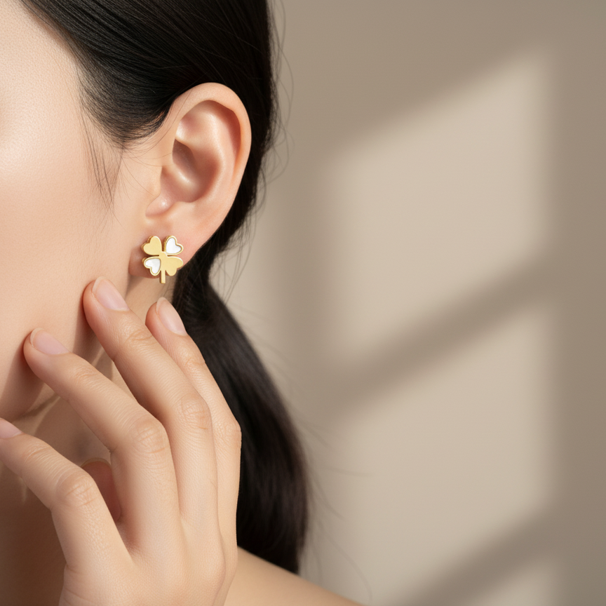 Description: This curated trio offers the ultimate foundation for your ear stack, blending classic elegance with modern sparkle. The set includes three versatile pairs: luminous Mother-of-Pearl Clover Studs for daily luck, sophisticated Beaded Halo Studs for timeless refinement, and a pair of dazzling Pave Crystal Huggie Hoops for a touch of glamour. Crafted with an anti-tarnish gold-tone finish and inspired by current Korean jewelry trends, this set provides endless styling options for every occasion.