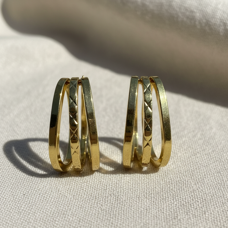 Description: This beautiful three-pair collection offers a harmonious blend of nature-inspired charm and contemporary statement style. The set includes whimsical Crystal Butterfly Studs and delicate Filigree Rose Studs for subtle, daily elegance, paired with a high-impact Layered Sculptural Hoop for when you want to make a bold impression. Crafted with a premium anti-tarnish gold finish, this versatile trio allows you to effortlessly switch between soft, feminine looks and modern, textured statements.