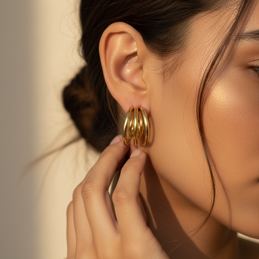 Sculptural Statement: Includes a bold, triple-ring hoop for a dramatic, layered look.