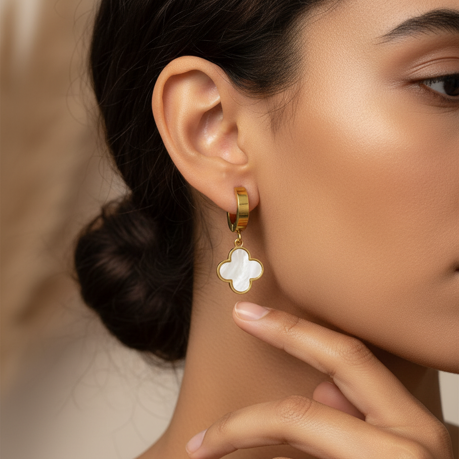 Style Tip: For a charming, everyday look, wear the Clover Dangle Hoops solo with a high-neck top. To create a full, curated stack, use the Star Studs in the main piercing and place the tiny Heart Studs in a higher lobe piercing for a coordinated, yet dynamic, feel.
