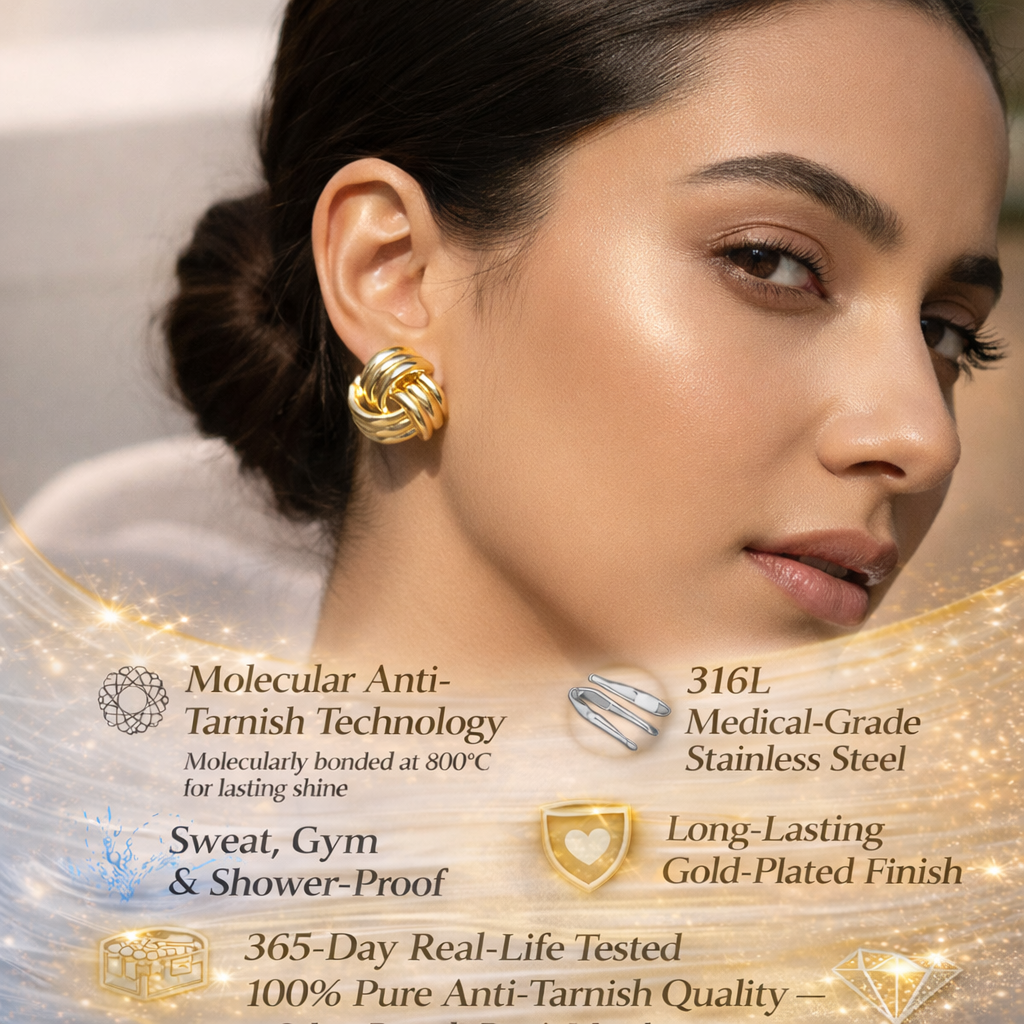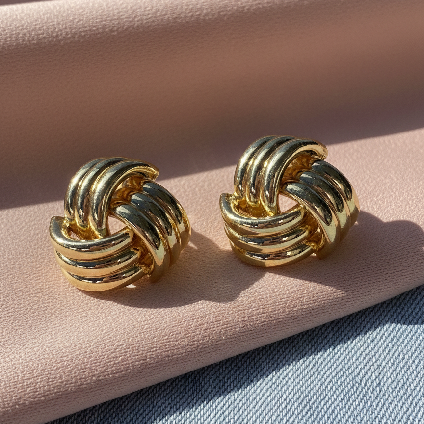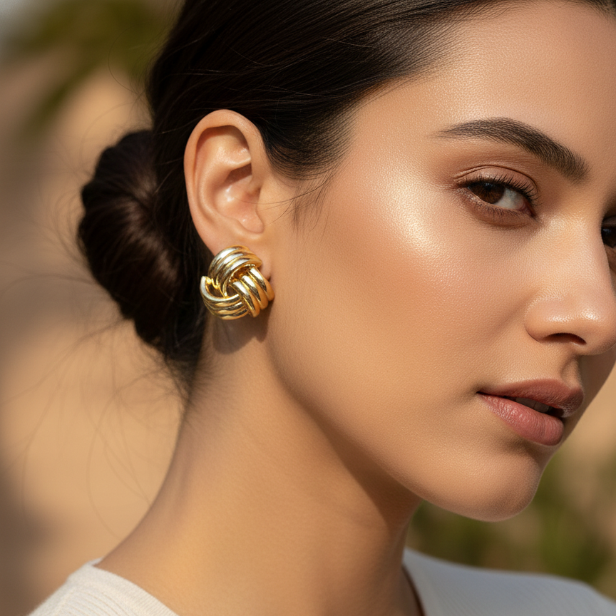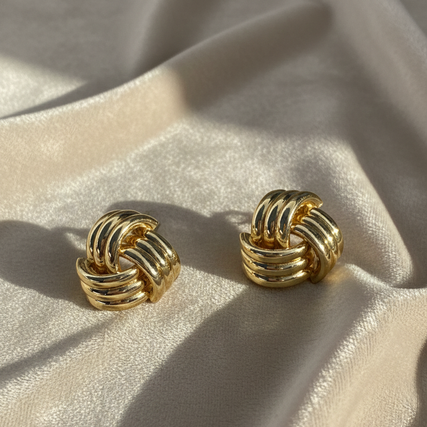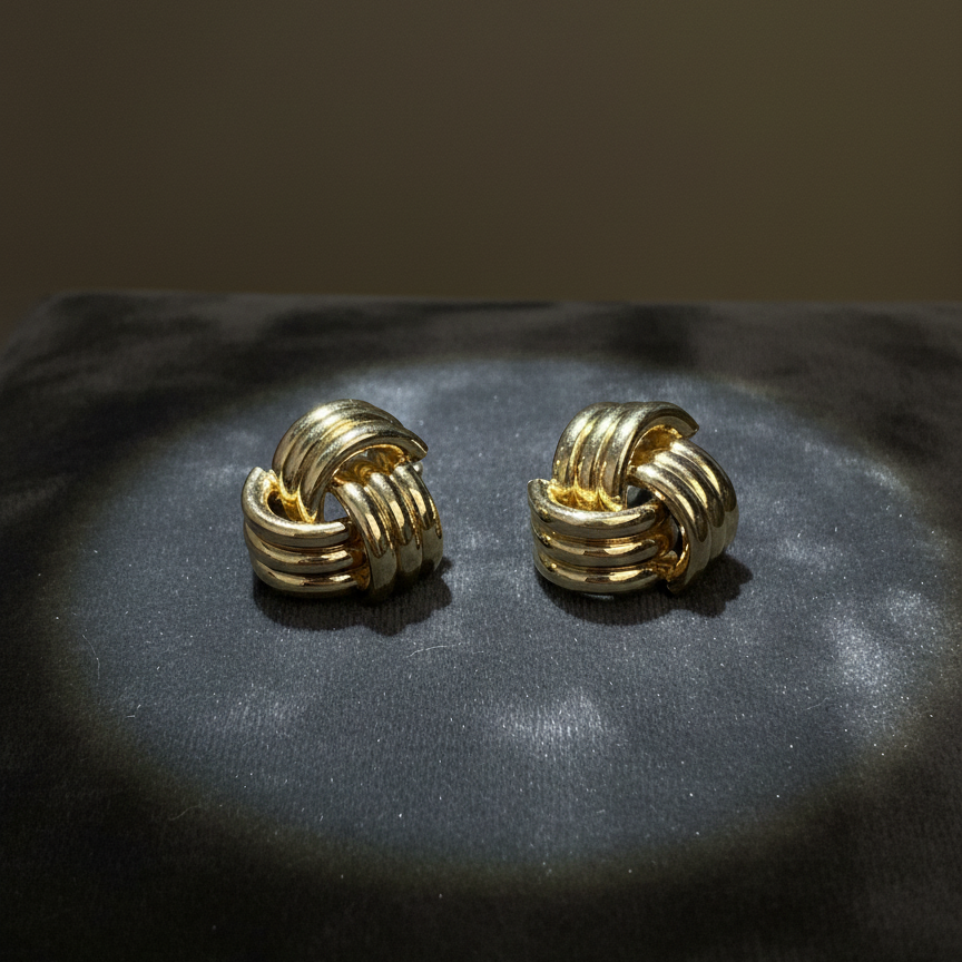Bold yet timeless, these knot-inspired stud earrings feature interwoven gold-toned curves that symbolize strength and elegance. Their sculptural form and polished finish make them a versatile choice for everyday wear as well as refined evening looks. Earring Type: Stud Earrings Finish: High-Polish