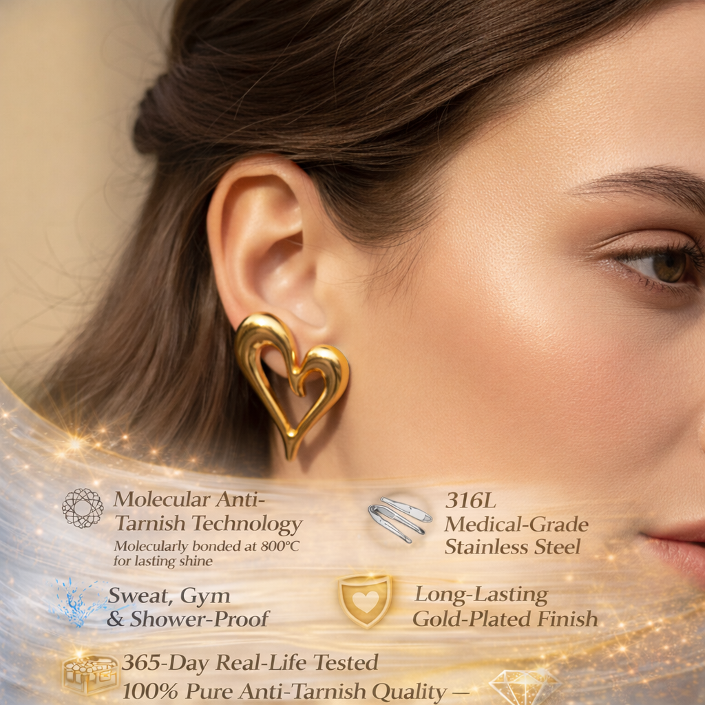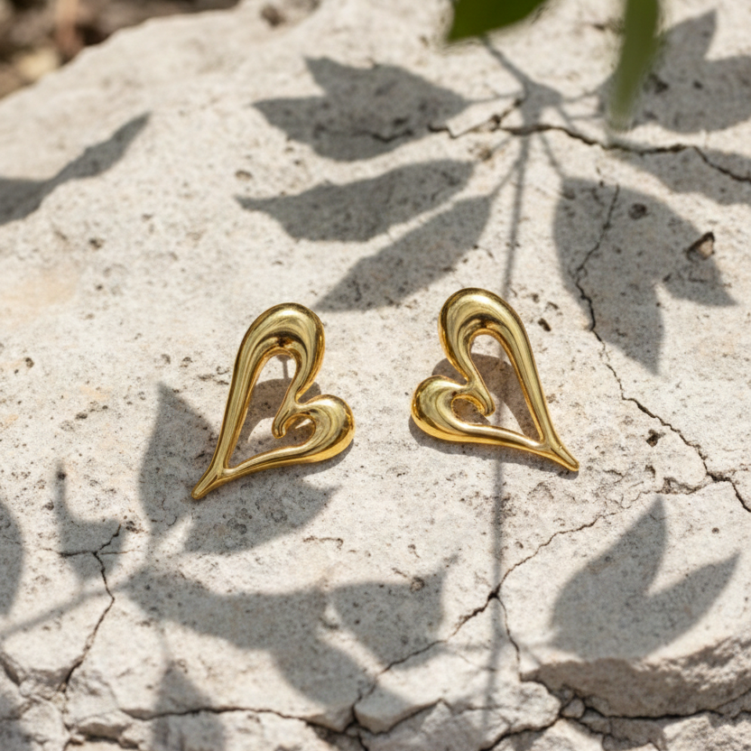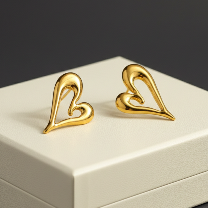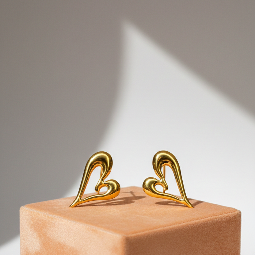Minimal yet expressive, these abstract heart-shaped stud earrings feature a smooth, fluid gold silhouette with a modern artistic twist. The open, asymmetrical heart design adds a contemporary edge while keeping the look elegant and lightweight—perfect for effortless everyday styling or subtle romantic flair. Earring Type: Stud Earrings Finish: High-Polish Gloss