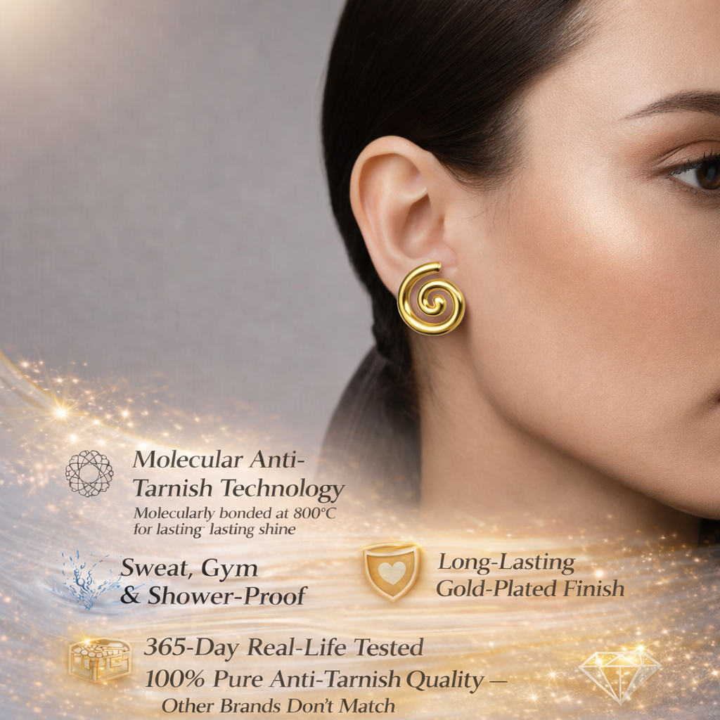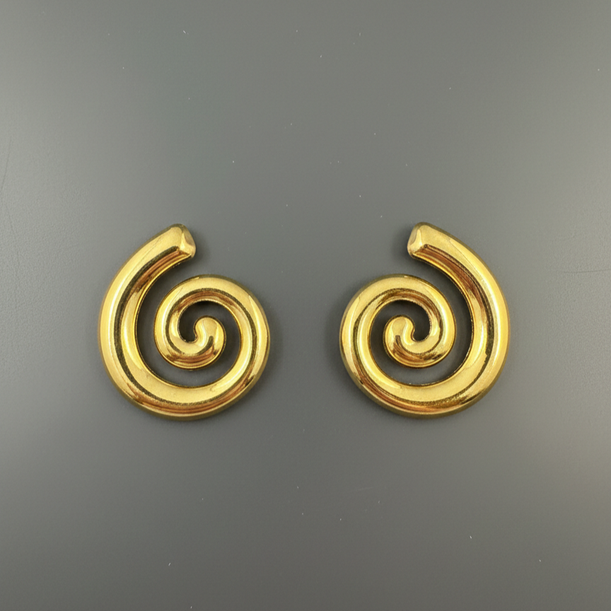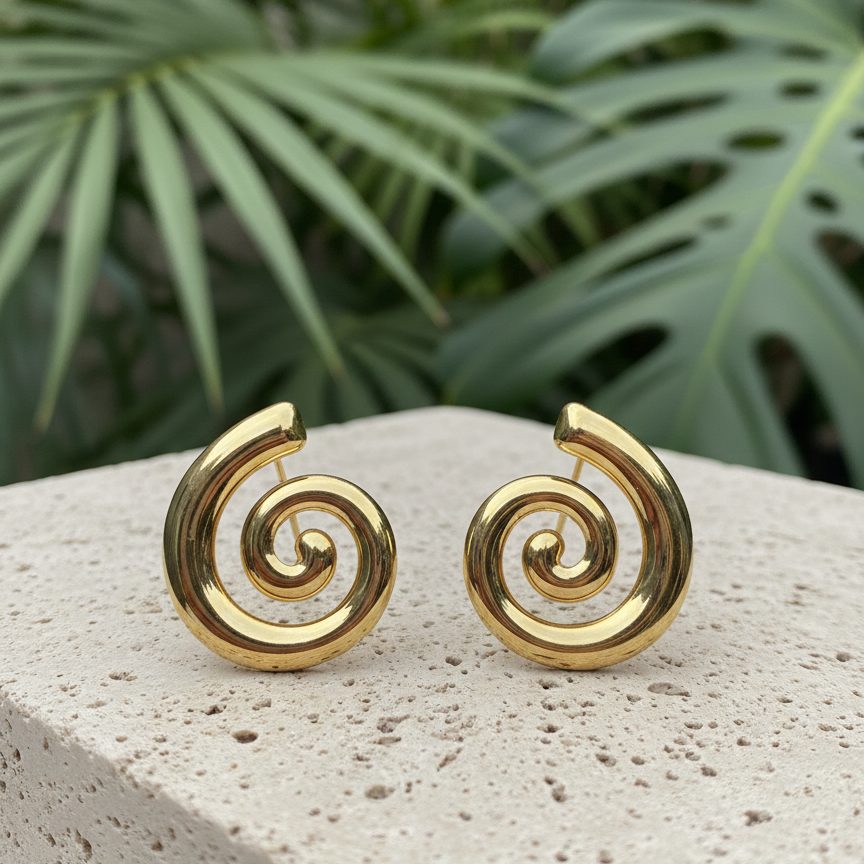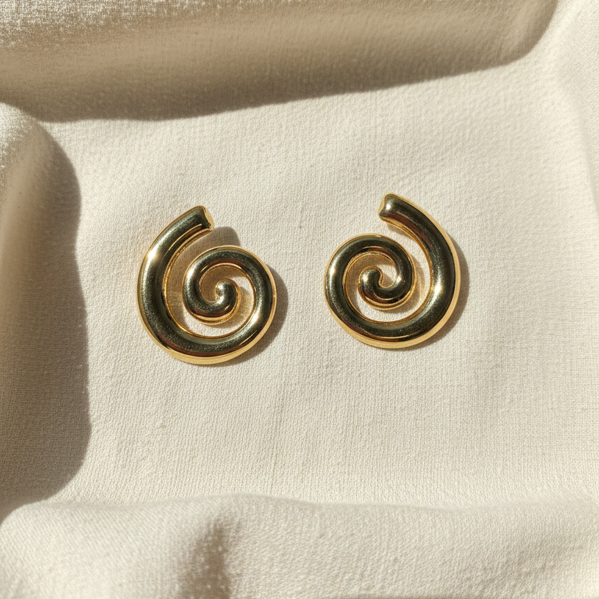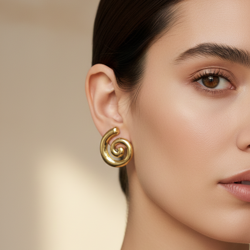 Bold yet minimalist, these spiral-shaped stud earrings are designed for women who appreciate modern elegance with an artistic touch. Crafted in a smooth, high-polish gold tone, the sculpted swirl form creates a striking visual while remaining lightweight and comfortable. Their clean, contemporary design makes them ideal for everyday styling as well as statement minimal looks. Design Style: Spiral / Swirl Motif Earring Type: Stud Finish: High Polish