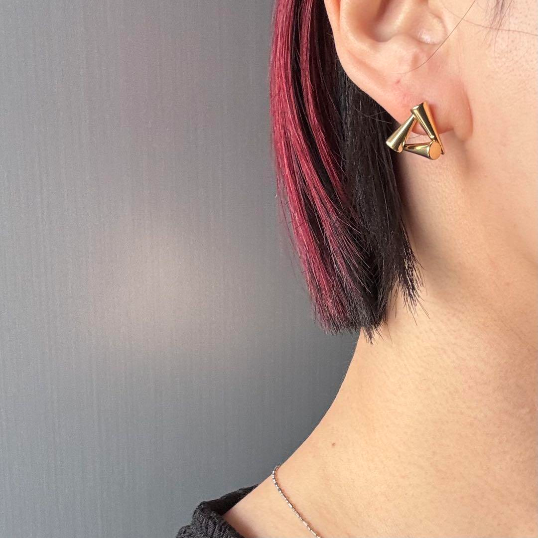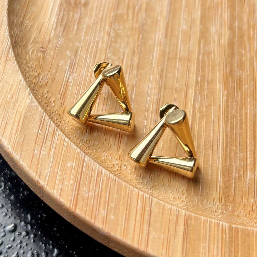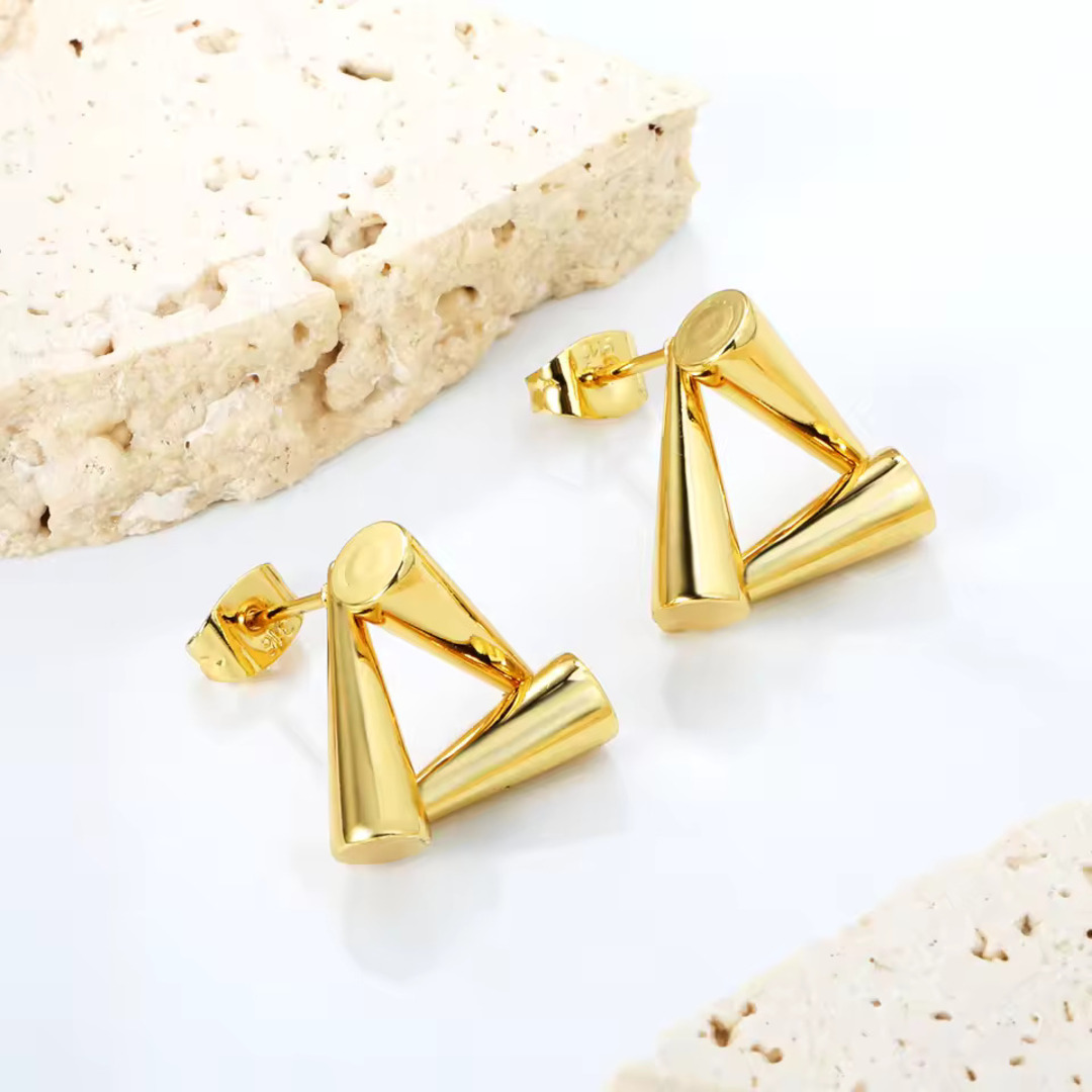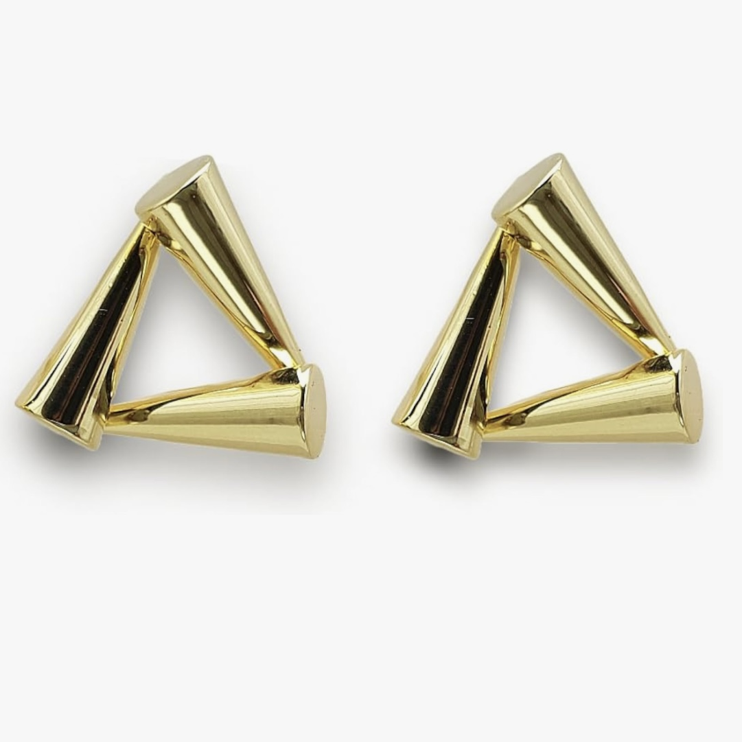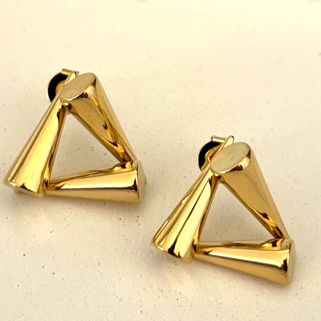 Make a bold statement with our Golden Prism Earrings, a perfect fusion of art and elegance. Designed with sleek geometric precision, these earrings feature a modern triangular silhouette crafted in radiant gold-tone metal, exuding confidence and sophistication.