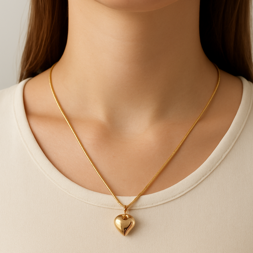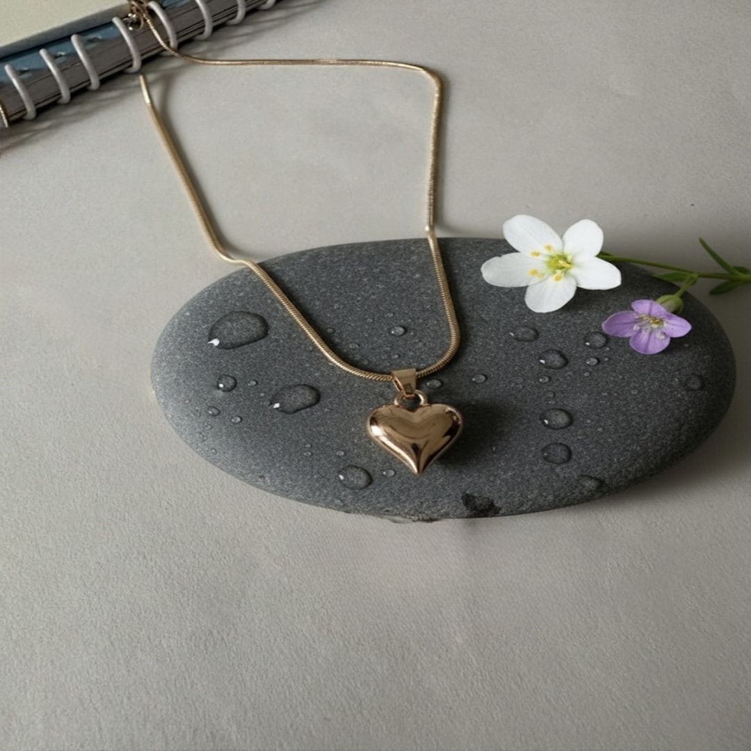 Radiate timeless elegance with our Timeless Heart Charm Necklace, a symbol of love, warmth, and grace. Crafted with a sleek gold-plated chain and a beautifully polished heart pendant, this piece captures the essence of modern minimalism with a touch of classic charm.