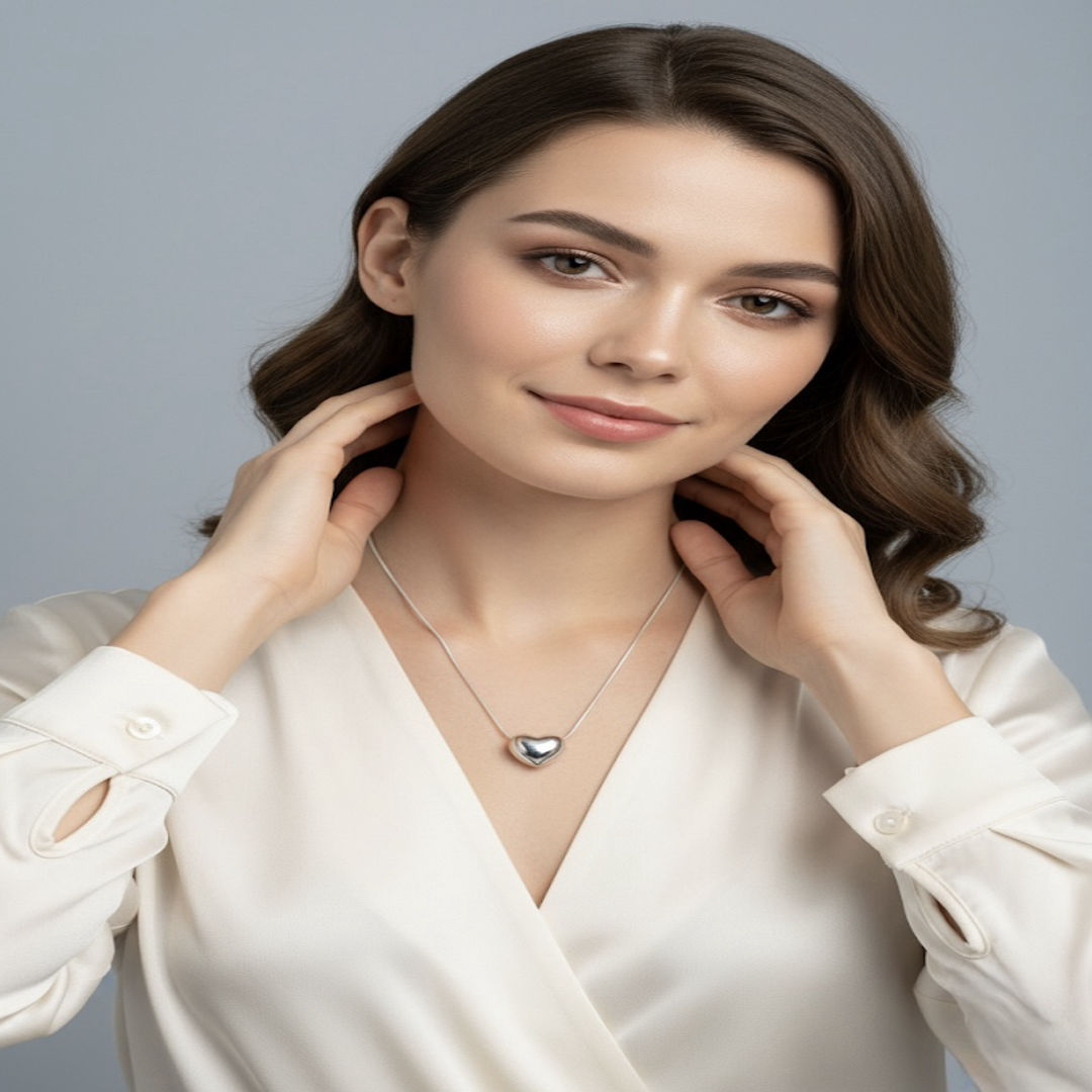 Embrace the beauty of simplicity with our Silver Soul Pendant Necklace — a timeless symbol of love and grace. Crafted with a sleek silver heart pendant resting delicately on a fine chain, this piece adds a subtle touch of elegance to your everyday look. Its minimalist design makes it perfect for those who adore understated luxury, reflecting both sophistication and sentiment in every detail.