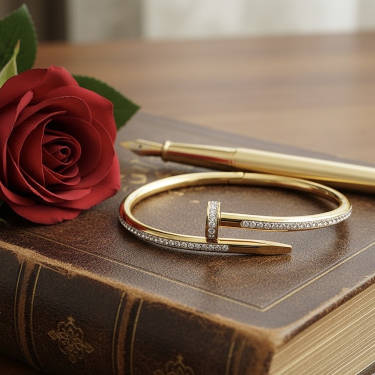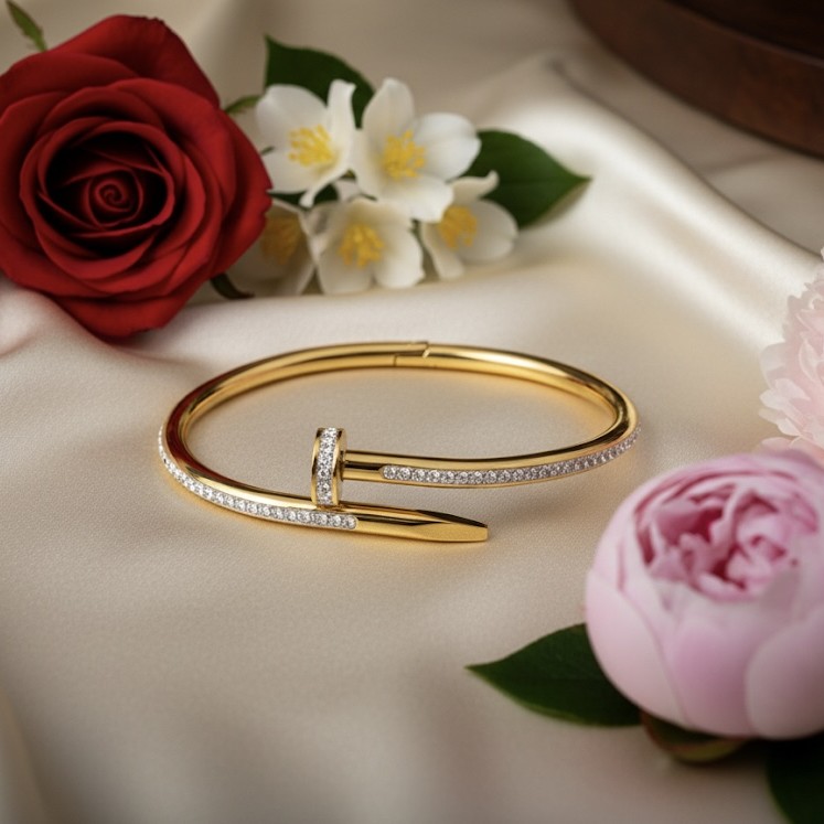 Use this bracelet to add a flash of unexpected glamour to your evening wear. It works wonderfully with leather jackets, structured blazers, or sleek, minimal dresses. To create a chic stack, combine it with a simple, unadorned gold bangle or a thin black bracelet to let the pave detailing truly pop.