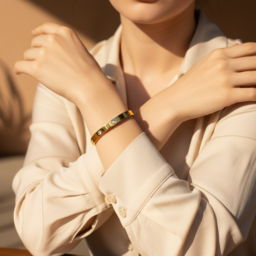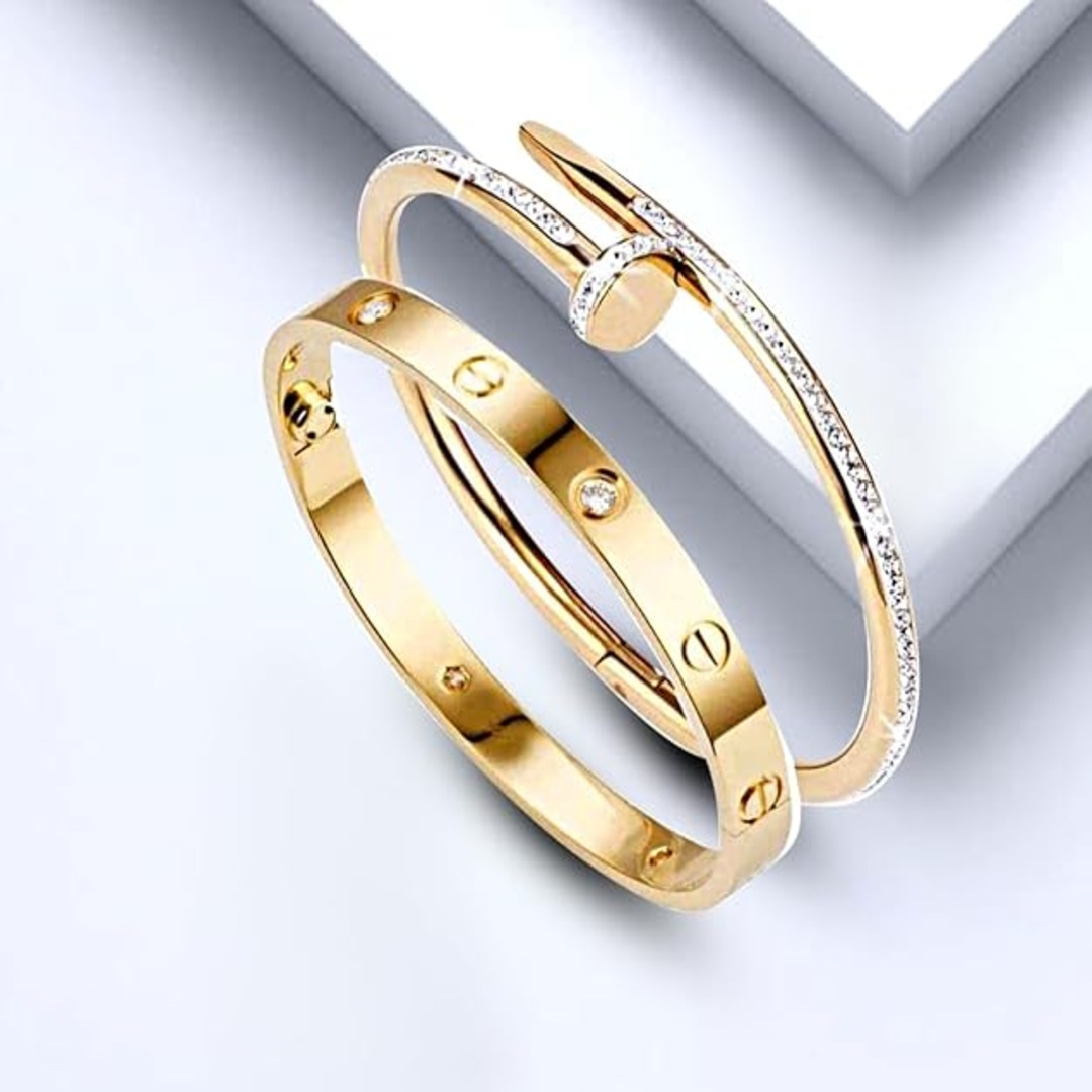 Two styles. One statement. The Pavona Ratna Modern Duo Bracelet Set combines a sparkling nail bracelet with a sleek screw-design bracelet. Wear them together for a bold layered look or style them individually for everyday elegance.